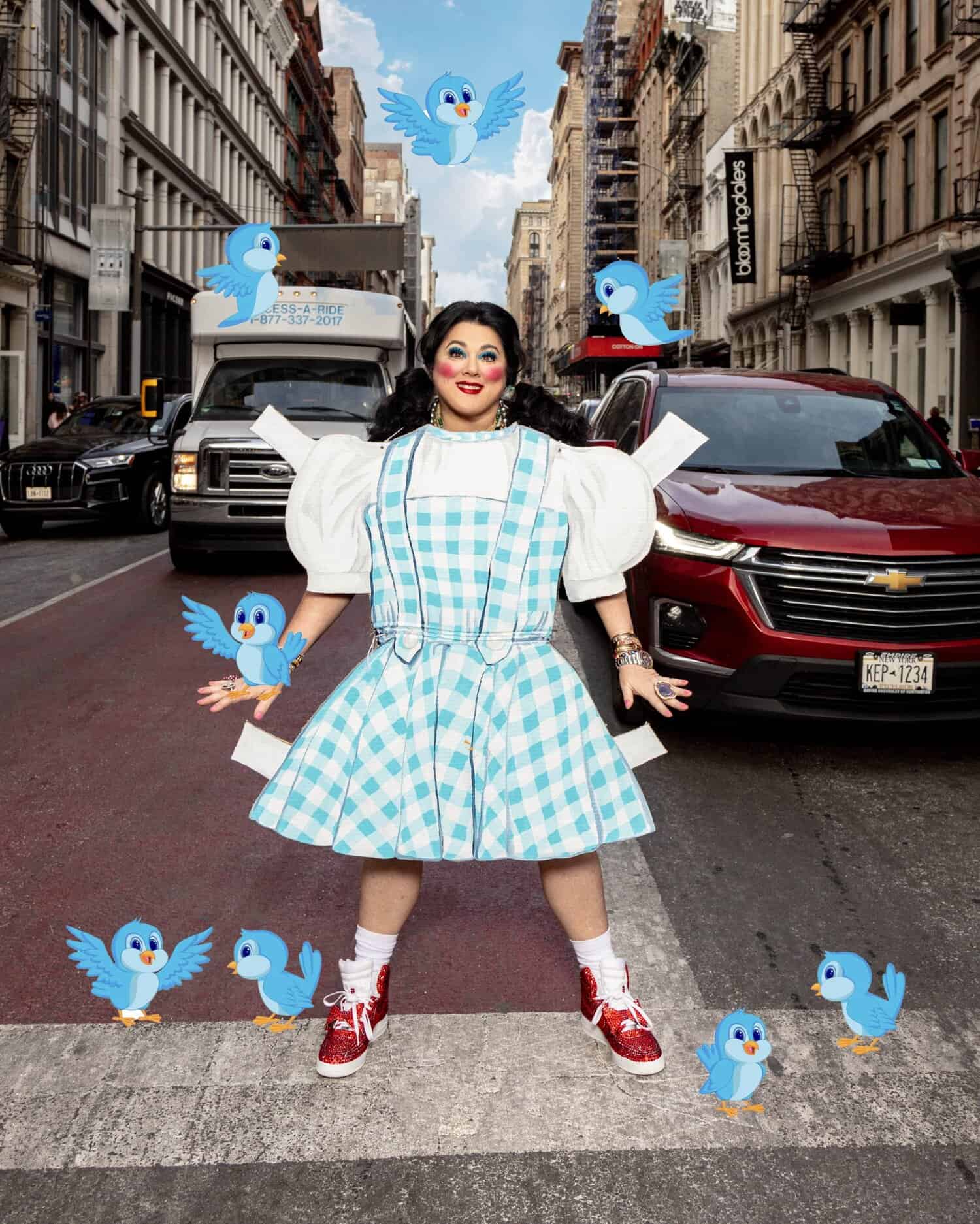 I also did a big collab with Gucci. I’m a designer for Judith Leiber. I’ve designed about nine or 10 bags for them. I love Dee [Ocleppo Hilfiger]. She and Tommy [Hilfiger] have been good to me. They’re such nice people. They’re so pretty. I also had a massive exhibition at Bergdorf Goodman. I had my own café there. So look, fashion, creativity, they’ve been a huge part of what I do. But also, as a pop artist, I love all the stuff. I want the bags I want, the clothes I want, the couture. I have all these things. I love the idea that fashion can just let everybody see on the outside how I feel on the inside.
