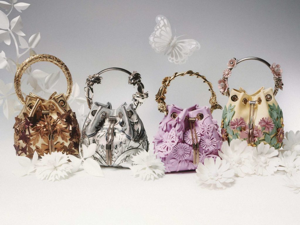 Taking inspiration from a bespoke artwork by paper artist Helen Musselwhite, the capsule collection seeks to translate the intricate beauty of the four seasons (Winter, Spring, Summer, and Fall) through the use of cut and layered leather to create a set of bags that blur the line between fine handbags and haute jewelry.