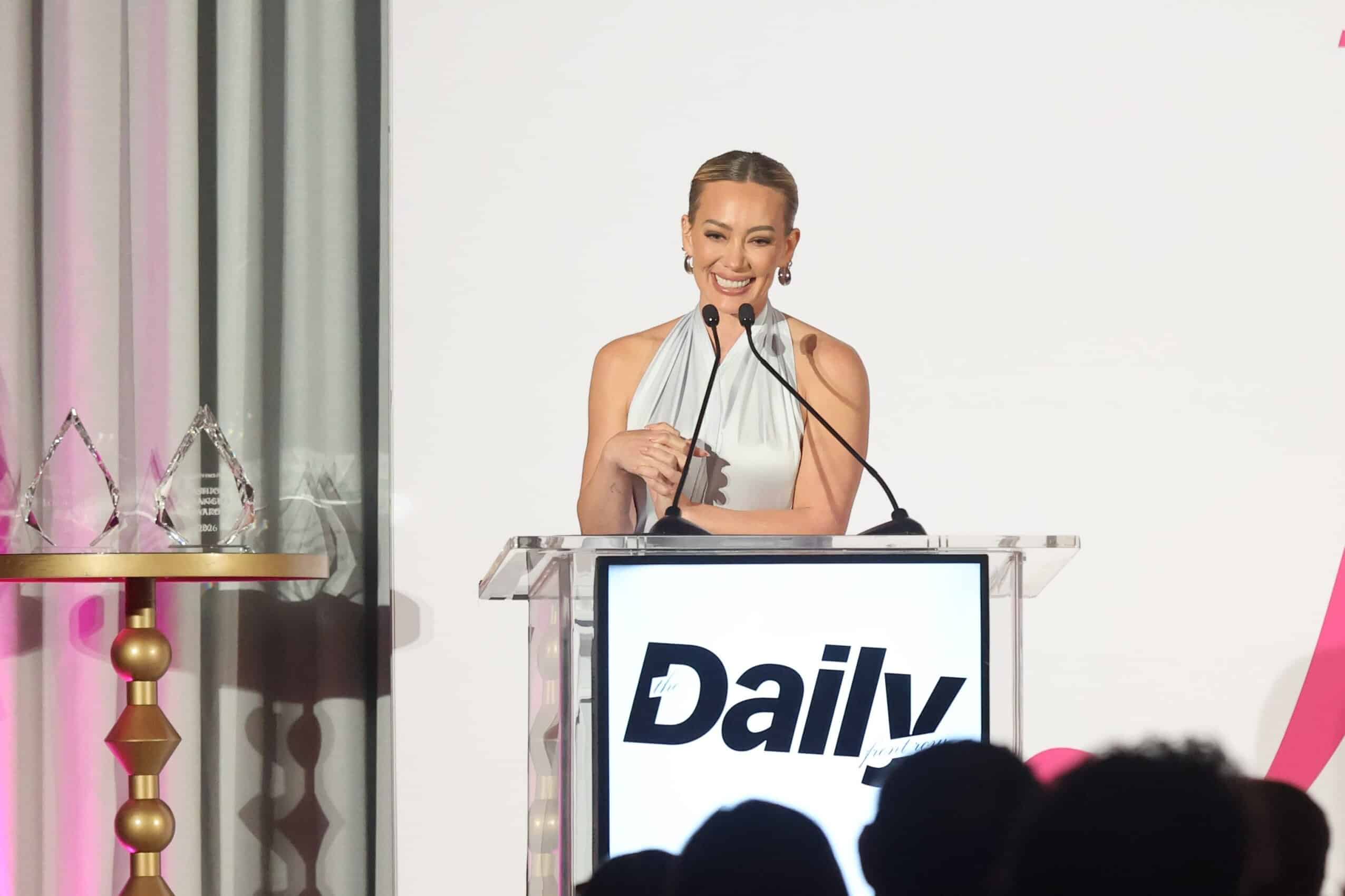 Hilary Duff shined a light on Kelsey Deenihan Fisher, who received the award for Makeup Artist of the Year. “Our friendship began like all healthy and lasting relationships do—on Instagram,” Duff joked. “A friend showed me her page and was like, ‘I would do anything to have her do my makeup.’ Then I got the chance to have Kelsey do my makeup, and that pretty much ruined me. I was done for. I looked in the mirror, and I was like, ‘I’m stunning. No notes. What did you do to me?’”